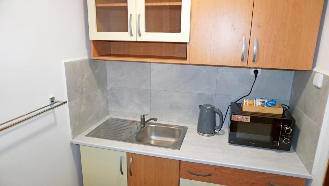 A microwave and kettle are also available.